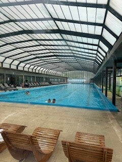 Zwemfaciliteiten: Deze camping heeft voor ieder seizoen het zwembad op orde. Er is een fantastisch buitenbad, met glijbanen en uitzicht op het terras. Ook is er een heel klein peuterbadje buiten op een aparte plek, waarbij je als ouder dus heerlijk op het terras kunt zitten. Voor nu was dit te koud, dus hebben wij gebruik gemaakt van het binnenbad. Dit is een groot 50 meter bad met een dak die open kan. Hier zit een afgesloten kinderbadje bij die elke middag van 14-17 in gebruik is. Je kind kan hier op 1 manier uit, dus dit zorgt voor een erg veilig gevoel.