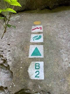 Wij hebben gekozen voor route B2. Na wat research online kwamen we op deze route. Goed te lopen met kleine kinderen, 'maar' 4.5 kilometer lang en een speeltuin aan het einde. Dit klonk ons als muziek in de oren! Op de camping hebben we de rugdrager ingepakt, de draagzak en een rugzak. In de rugzak luiers, doekjes, drinken, broodjes en een snackje. Tevens water voor ons en de hond. We hebben onze auto geparkeerd bij de school in Berdorf. Hier is een groot parkeerterrein en konden wij makkelijk de auto kwijt. Onderweg wordt supergoed aangegeven welke route je moet lopen, en of je zijpaden kunt kiezen.