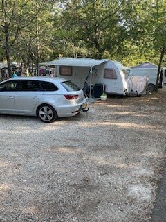 Het rijden: Vanuit Dobriach vertrokken we op tijd richting Kroatië. Helaas was er een ongeluk gebeurd rond Villach, dus hebben we een flink stuk binnendoor gereden. Ook rond Ljubljana was het erg druk, met veel oponthoud. Om 15.00 waren we op Bijela Uvala, 333 kilometer, waar we ongeveer 7 uur over gedaan hebben. Onze ervaring is toch dat buiten Duitsland je al snel daalt gemiddeld naar 60km per uur (inclusief stops etc).